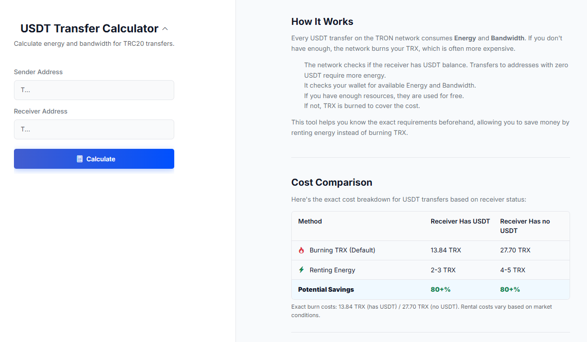 This is when aids such as the Netts USDT Transfer Calculator come in not for convenience but necessity. It enables a user to preview the energy and bandwidth consumption of a transaction before confirming it. Rather than spending 27 TRX to just send a transfer or something similar that is being sent to an empty wallet, the user can see already that renting the same amount of energy we pay on staking at the moment (3 or 4) might be all they want. It's a straightforward arbitrage of resources — rent don't burn — that can cut USDT fees by more than 80%. It makes blind, wasteful spending a smart, effective investment.