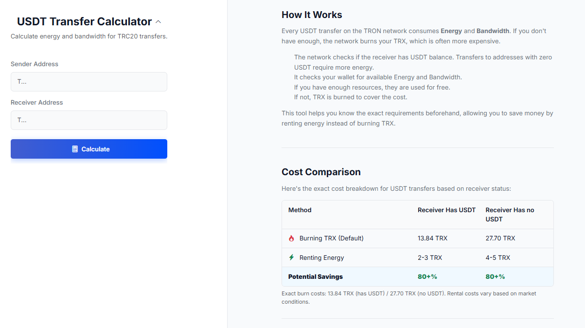 As an active participant in the ecosystem, finding a cheap transfer method for USDT is crucial. This is where specific tools allow you advantages. The netts service: USDT Transfer Calculator is created to boost exactly these apply. When you transfer Tether on the TRON network, it uses some Energy and Bandwidth from you, if you do not have any of them, the network will burn your TRX based on your USDT fees.