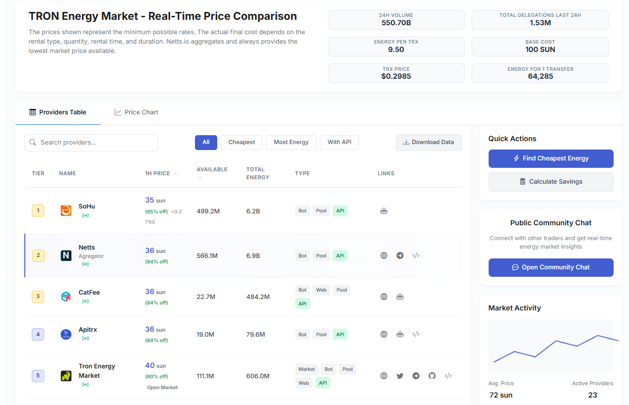 Within this sprawling landscape of data services and variable network dynamics, survival depends on the discovery of the optimal route. Similar to how a cyberpunk hacker uses the best software tools available to penetrate corporate firewalls, a modern crypto user uses aggregation services to optimize their transaction costs. Hence, here is where platforms like the Netts service: TRON Energy Market, shine at delivering a great range of over twenty providers compared against many variables ensuring that users are always connected to the best rates for their network operations, and effectively democratizing the access needed to the computational power to sustain the on-going financial revolt.
