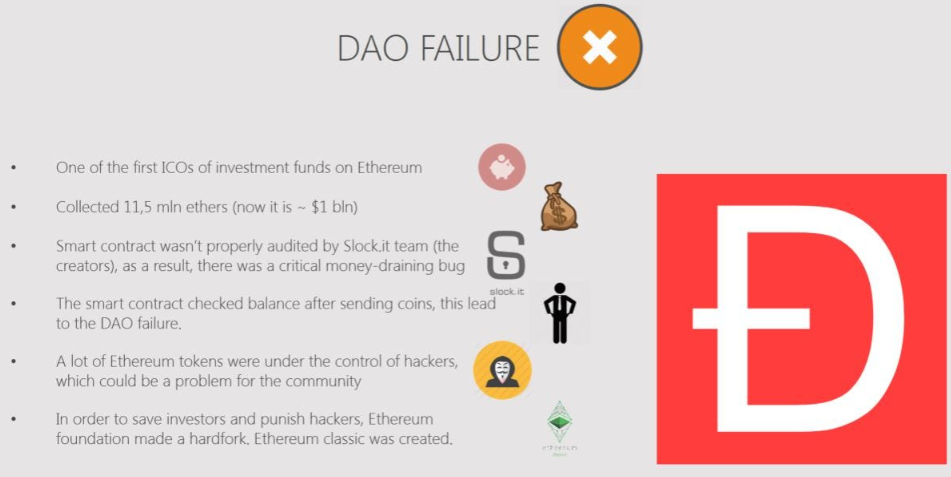 Nobody spotted a vulnerability in the code during audit, either. On 13 June, 2016, an attacker found a re-entrant bug in The DAO’s smart contract — a vulnerability that made it possible for them to repeatedly call the withdraw request before updating the contracted balance, draining funds in a loop.