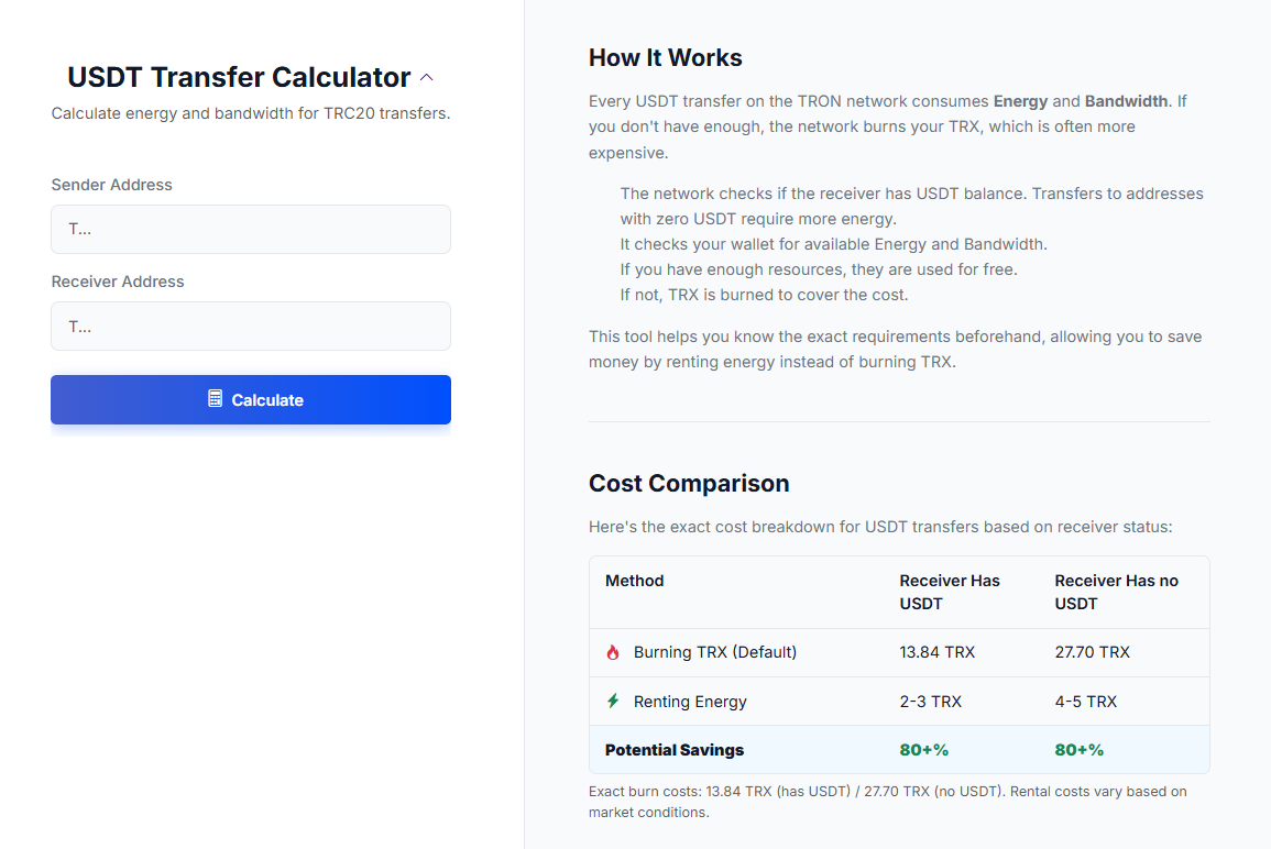As DeFi grows up, the emphasis on efficiency doesn’t just apply to capital — it applies to the mechanics of trade, too. On networks including TRON where there are huge stablecoin overheads, keeping transaction costs down has become so important to users. Each operation (for example, a USDT transfer) requires Energy and bandwidth to consume the network resource. If users don’t have enough assets in their wallets, they need to burn the network’s native token, TRX — a much more expensive payment method. This requires tools that support users in a meaningful way through those costs.