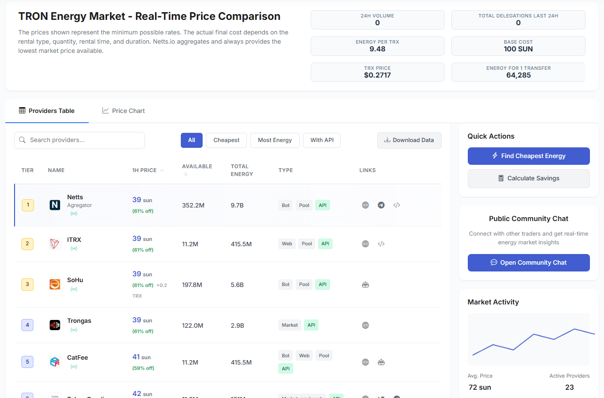 In the speed-of-light environment of the TRON blockchain and token creation, platforms have to deliver efficiency. Regardless of if you're conducting a massive airdrop, operating a popular dApp, or simply looking to minimize your own trading fees, there’s no reason to pay full fare for network fees. Enter Netts with their TRON Energy Market. Netts pulls details from more than 20 providers to make sure you always find the lowest price for Energy rentals, savings around 50-80% compared to what burning TRX costs normally. It has real-time price comparison, a very solid API for you developers and delegating resources is snappy and fun with their intuitive command interface. If you plan on operating on a budget in TRON, hopping onto the Netts market to find the most decent rates is imperative for what you’re doing.