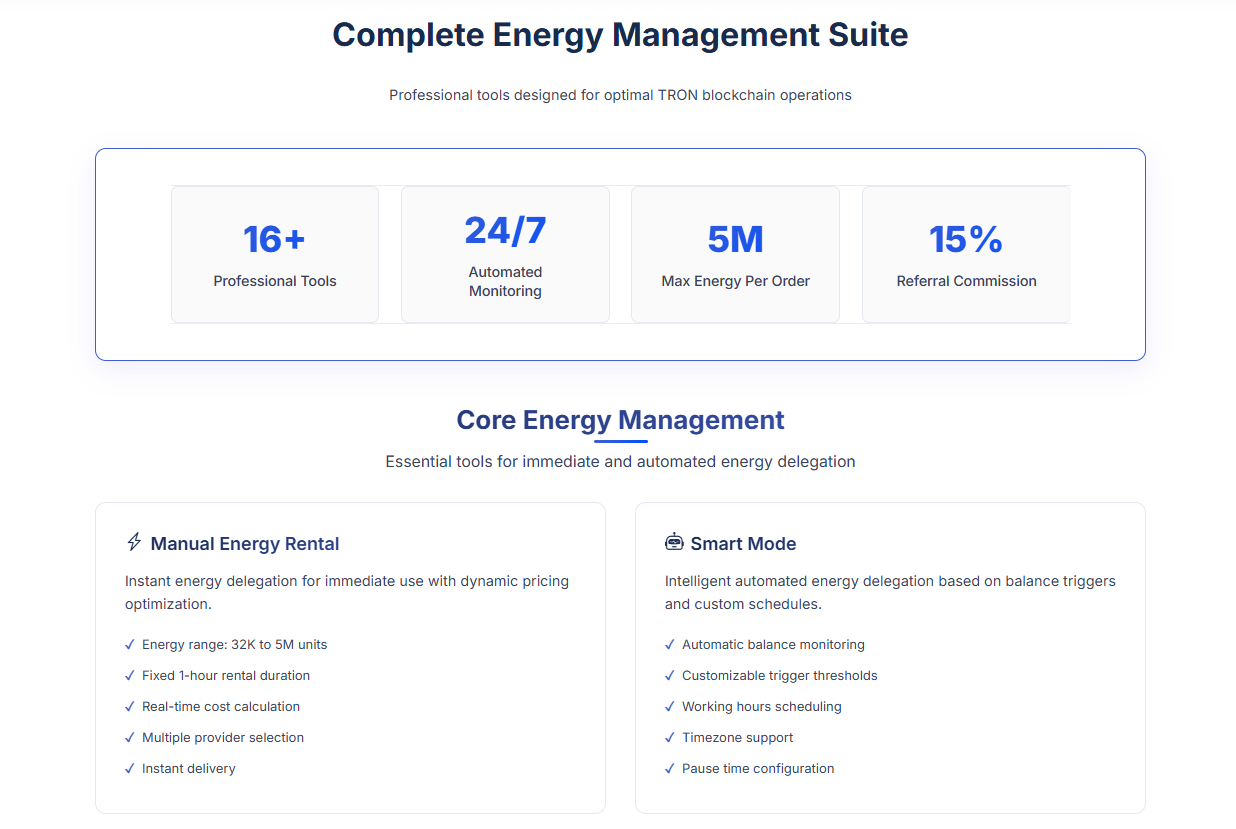 As an example Netts Workspace provides full TRON Energy management suite - smart scheduling, real-time cost optimization and delegated automation. It provides a rich API and complete dashboard for financial management plus analytics — it makes resource management simple, so creators and businesses can concentrate on building their applications without worrying about the upkeep of infrastructure.
