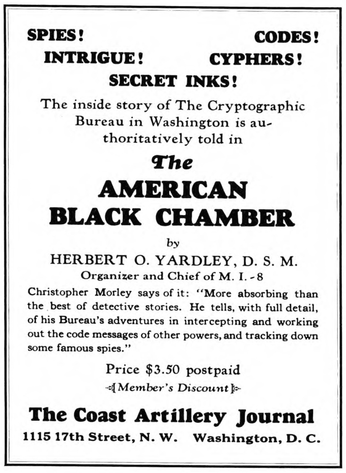 Herbert Yardley’s 1931 tell-all The American Black Chamber was a cookbook that whetted the public’s appetite for divining secrets, while exposing intercept stations and launching the first worldwide debate over privacy versus security.
