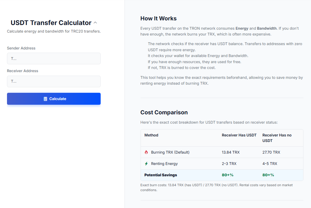 This article was brought to you by Netts. Netts' USDT Transfer Calculator is one of its many features, allowing you to find out exactly how much Energy you will need to rent for the next transaction: