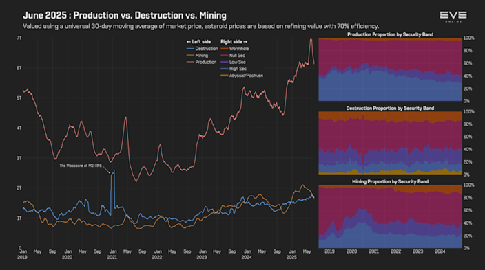 But EVE Online takes the economics of virtual currency to a whole new level. Its Interstellar Credits (ISK) have powered an economy so intricate, it has been tracked and studied by economists in the real world. EVE has all the ups and downs of real life economics — there are inflationary periods and deflationary periods, market manipulation and economic warfare between player corporations.