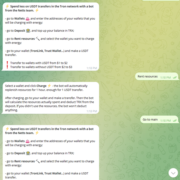 One of those use cases is the Energy rental market on TRON. Simple bot interfaces are now turning intricate economic activities into basic financial services within the reach of anyone in the world. This includes the Netts Energy Bot which automatically rents Energy when sending USDT, saving you money and time: