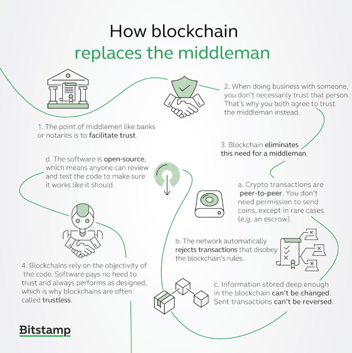 2. Security through cryptography eliminates the need for trust in established legal and regulatory frameworks.