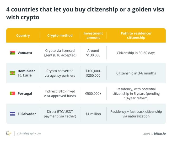 For those who want to increase their personal freedom and reach, cryptocurrency has opened up many doors that were once challenging to open. Many nations which offer ‘Cash-For-Passport’ or ‘Golden Visa’ schemes have already begun to accept cryptocurrencies as payment and/or evidence of financial means. Countries such as Vanuatu, Antigua and Barbuda — and increasingly El Salvador — have been leading this trend. Through a hefty investment in the country’s economy — often in real estate or a government fund that contributes to economic development — paid for in crypto, an individual may secure a second passport or permanent residency.